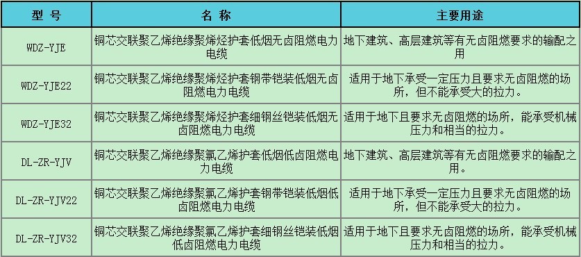 五、電纜的型號、名稱及主要用途