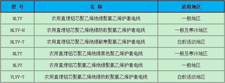 農(nóng)用直埋鋁芯聚乙烯絕緣聚氯乙烯護套電線